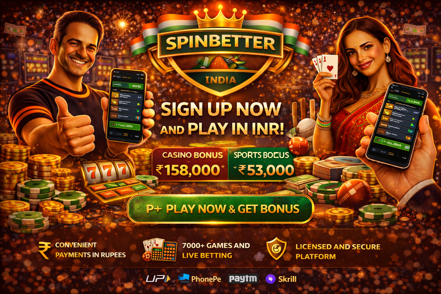 SpinBetter India offers Indian players a unique combination of technology and comfort. The platform brings together more than 7,000 slot machines, a detailed line on cricket and football, as well as transparent calculations in rupees. We’ve removed the complex circuitry and hidden conditions so you can focus on the game. New users receive a welcome package of up to 158,000 INR + 150 free spins for the casino or up to 53,000 INRs for sports betting. Register and start winning now!
